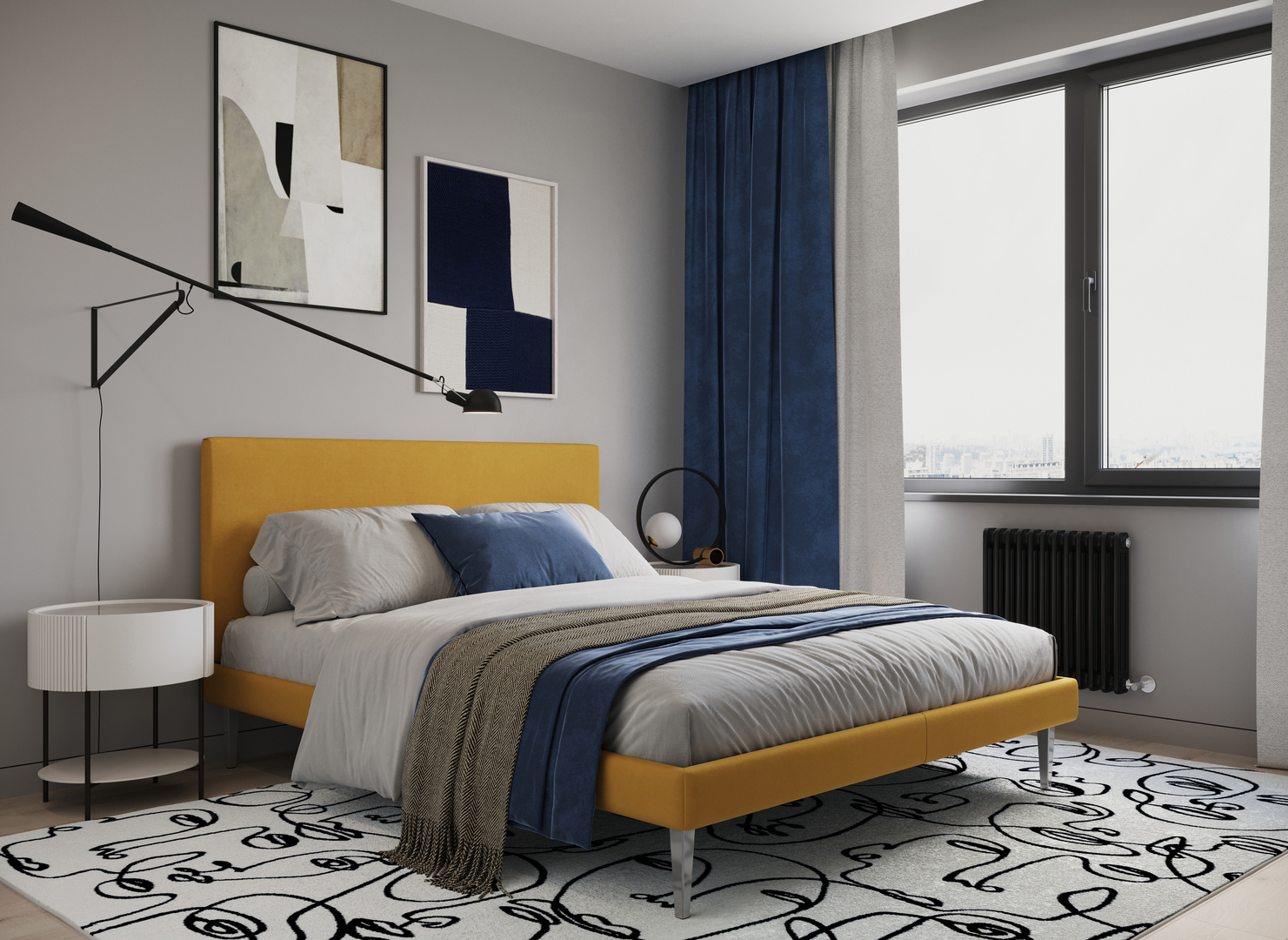 Кровать MOON FAMILY 1256 демонстрирует безупречный баланс изящных пропорций. Лаконичное изголовье, узкие царги и высокие опоры создают эффектный образ, привносящий в пространство спальни стильный и яркий акцент.