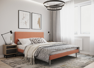 Кровать MOON FAMILY 1256 демонстрирует безупречный баланс изящных пропорций. Лаконичное изголовье, узкие царги и высокие опоры создают эффектный образ, привносящий в пространство спальни стильный и яркий акцент.