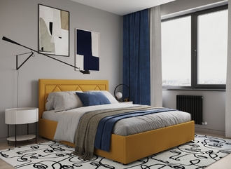 Создать гармоничный интерьер и завершить образ спальни помогут дополнительные аксессуары, например: тумбы, банкетки, подушки.