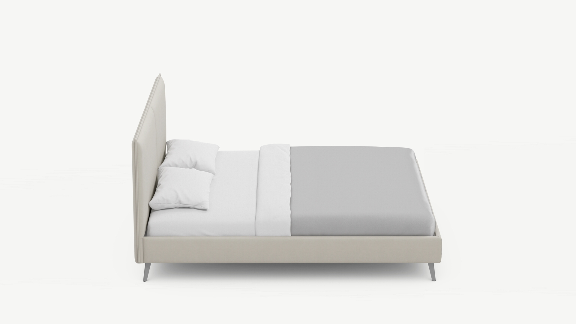 Кровать MOON 1171 привлекает внимание лаконичным дизайном и изяществом высоких наклонных опор. Кант, ограняющий изголовье, подчеркивает эстетику строгих форм и задает интерьеру стильное звучание.