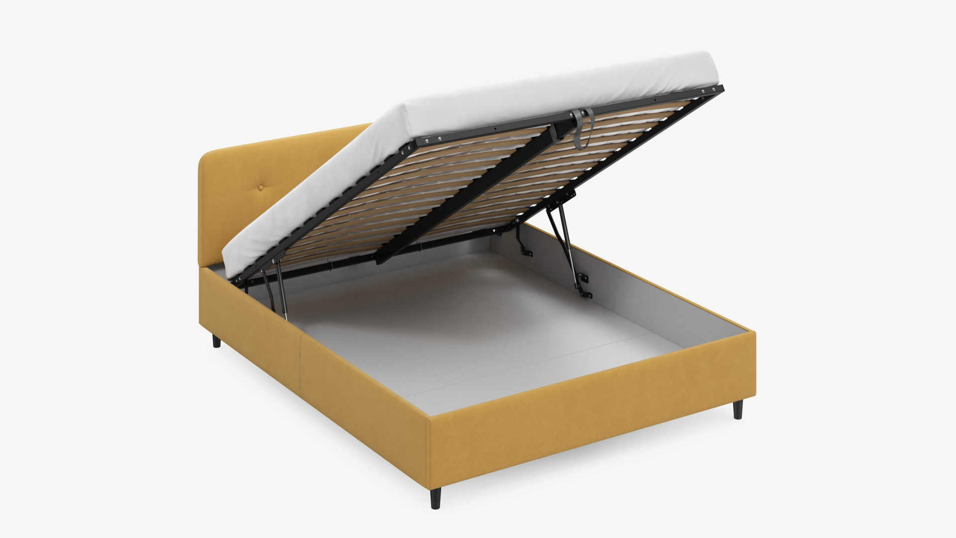 - Скрытая под основанием вместительная емкость без внутренних перегородок позволяет использовать всю площадь подкроватного пространства для хранения вещей.
