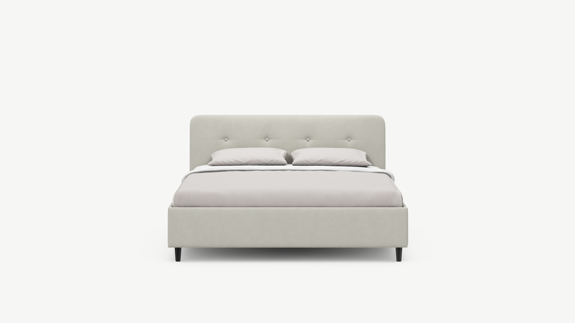 КроватьMOON FAMILY 1253 ярко демонстрирует очарование объемных форм, подчеркнутых изголовьем с искусной утяжкой на пуговицах.