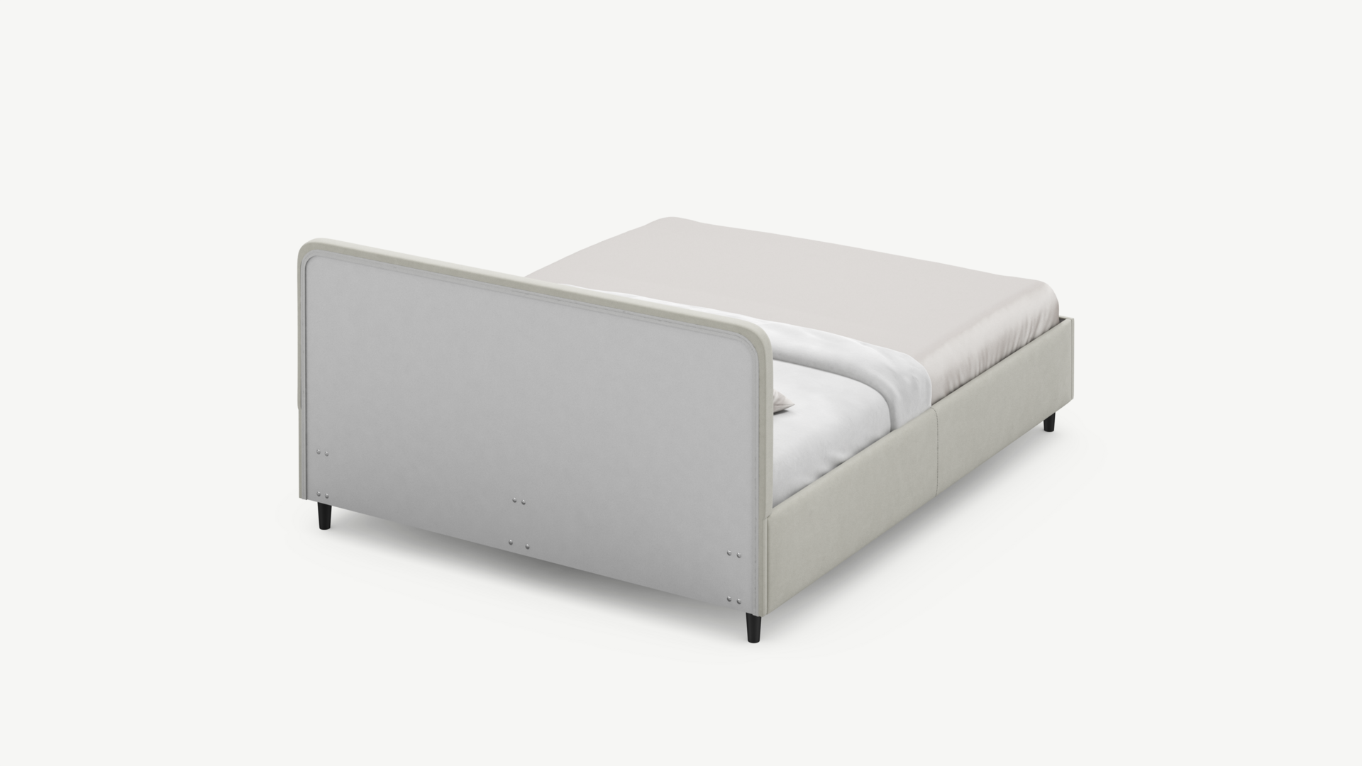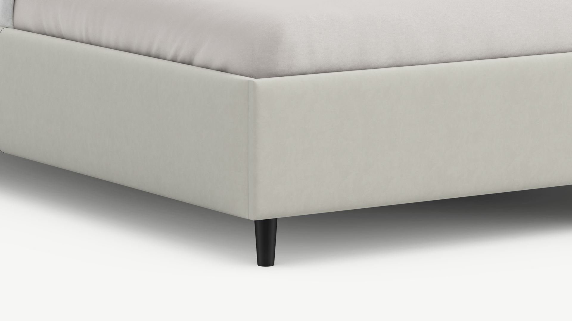 Царга, задающая пропорции, благодаря гладкости своей фактуры подчеркивает центральный элемент декора. Высокие опоры приподнимают фигуру кровати над полом и добавляют её образу визуальной легкости.
