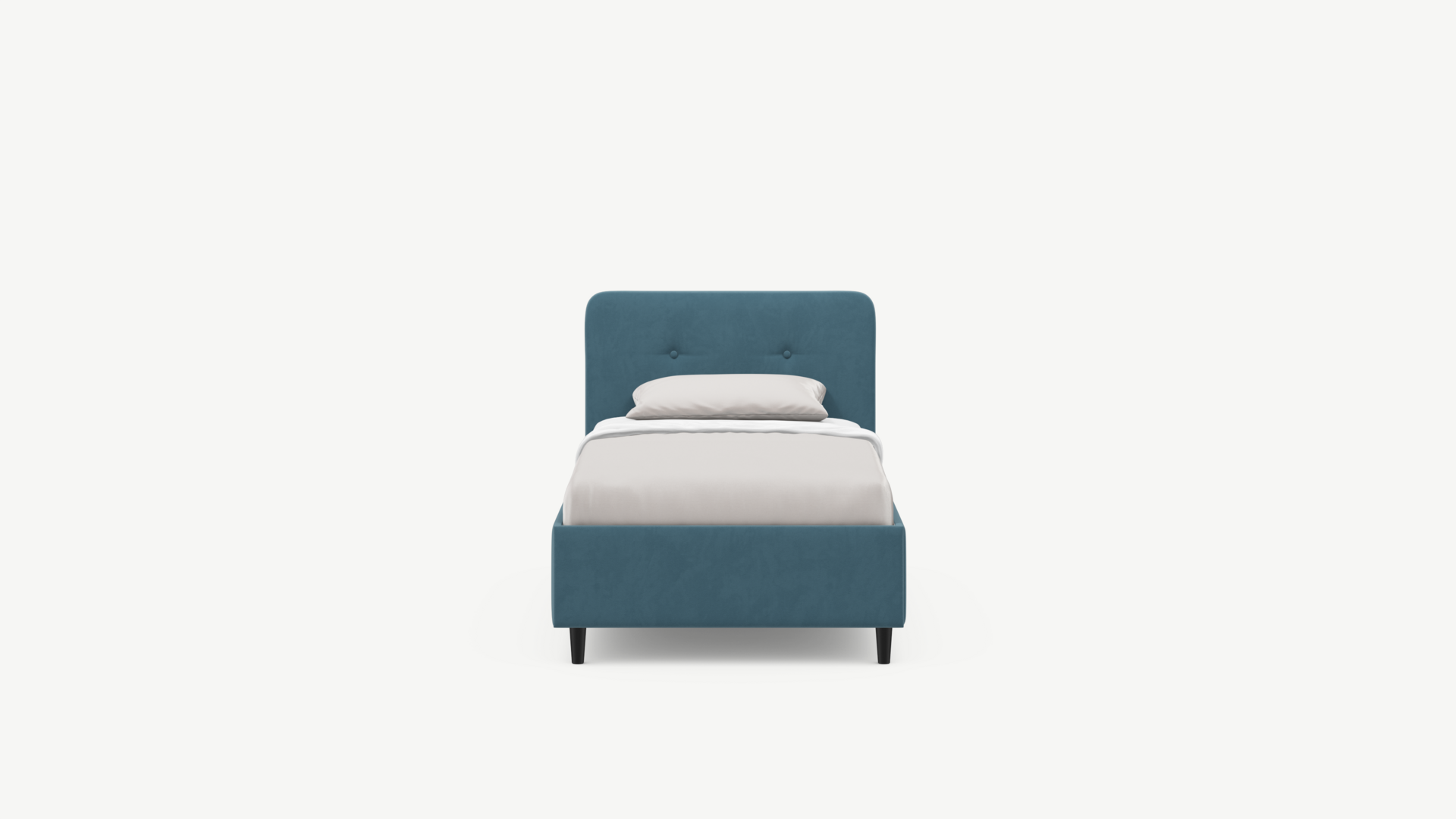 КроватьMOON FAMILY 1253 ярко демонстрирует очарование объемных форм, подчеркнутых изголовьем с искусной утяжкой на пуговицах.