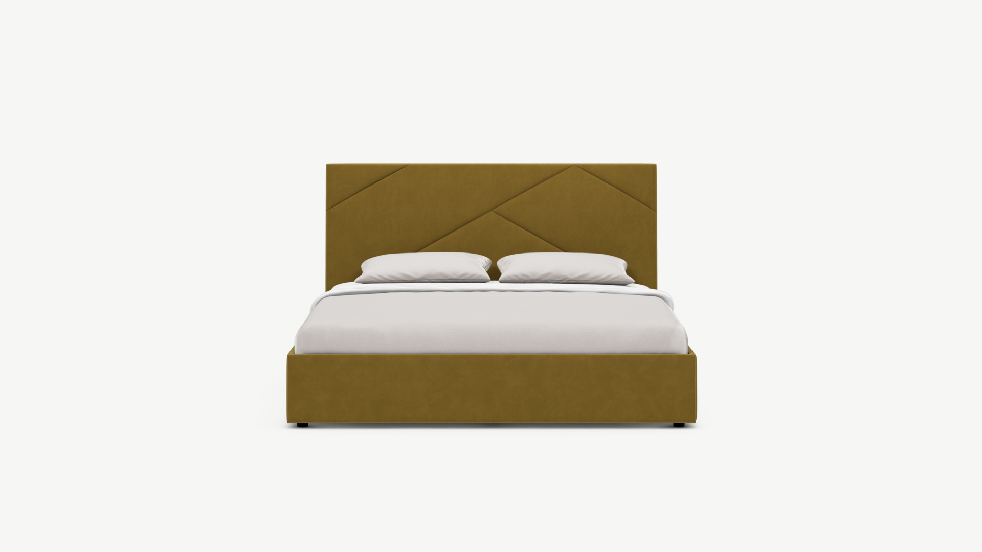 MOON FAMILY 1257 привлекает внимание оригинальным исполнением: широкие полосы ткани эффектно пересекают периметр изголовья, создавая на нем графический орнамент. Лаконичные формы объемных царг создают единый гармоничный образ и фокусируют внимание на центральном текстурном элементе кровати.