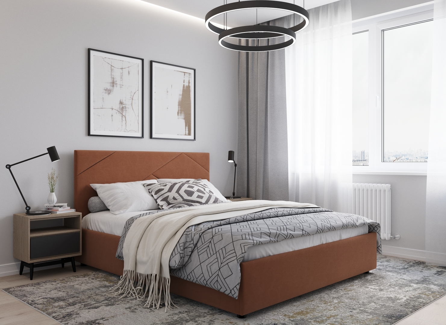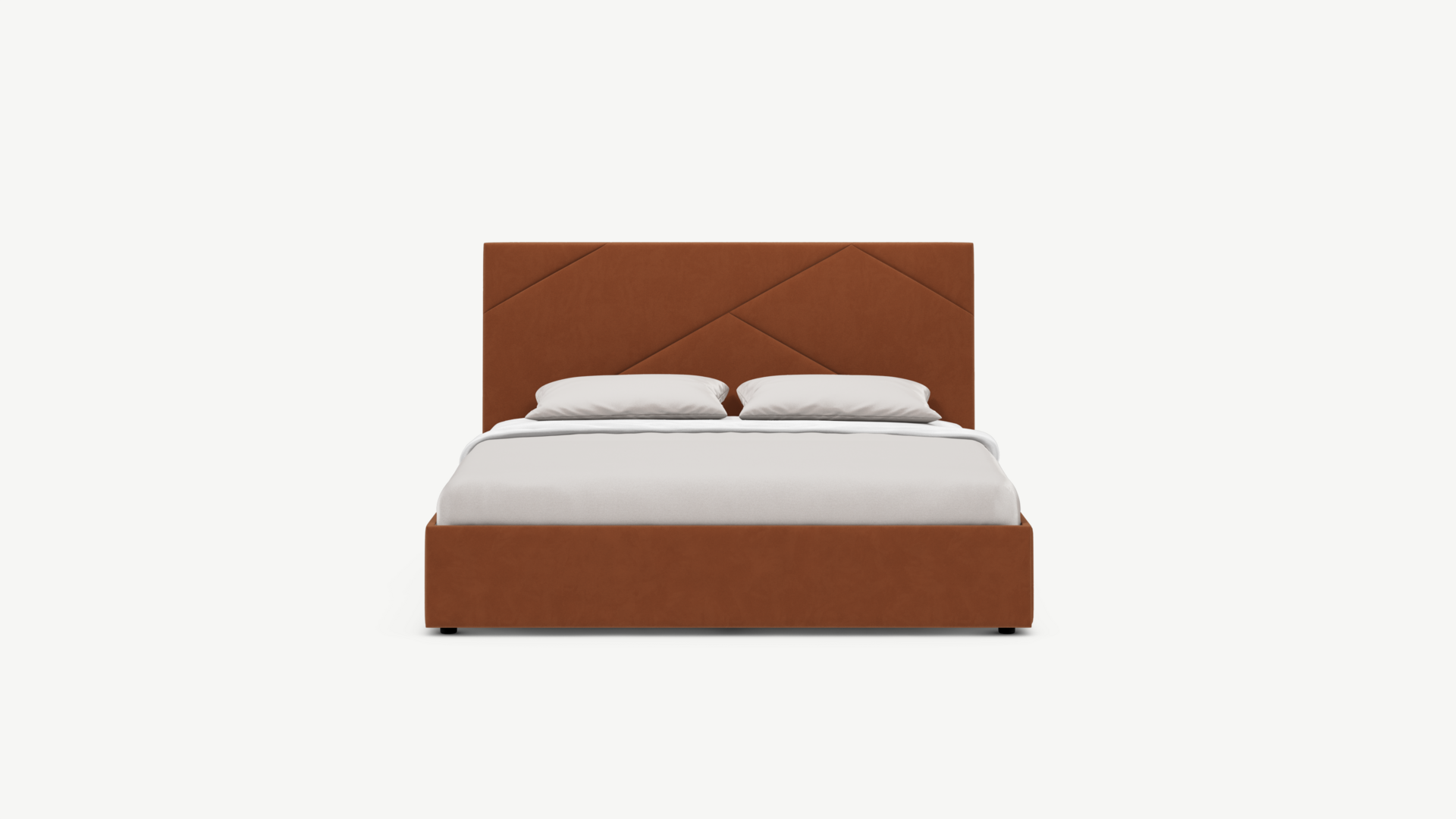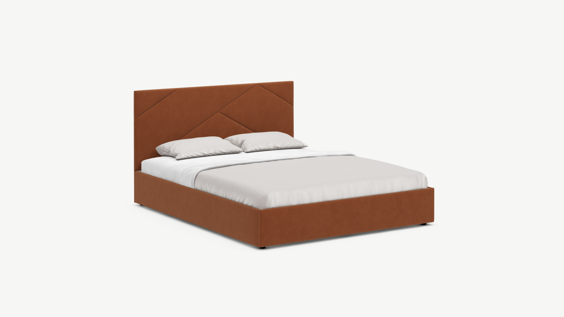 MOON FAMILY 1257 привлекает внимание оригинальным исполнением: широкие полосы ткани эффектно пересекают периметр изголовья, создавая на нем графический орнамент. Лаконичные формы объемных царг создают единый гармоничный образ и фокусируют внимание на центральном текстурном элементе кровати.