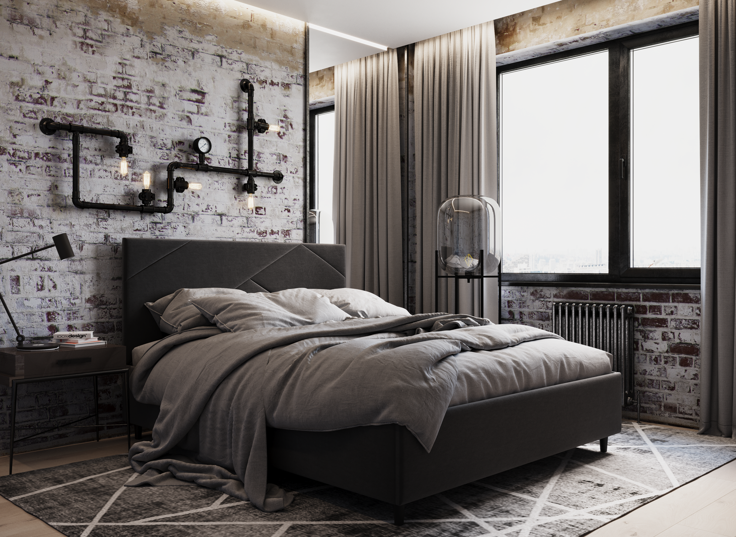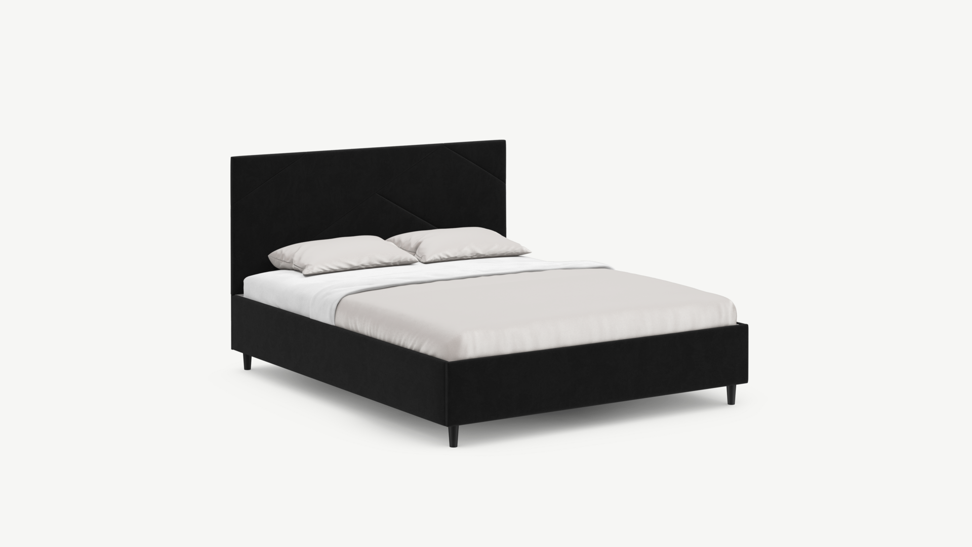 MOON FAMILY 1257 привлекает внимание оригинальным исполнением: широкие полосы ткани эффектно пересекают периметр изголовья, создавая на нем графический орнамент. Лаконичные формы объемных царг создают единый гармоничный образ и фокусируют внимание на центральном текстурном элементе кровати.