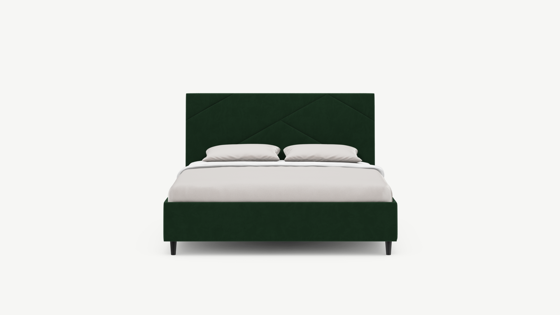 MOON FAMILY 1257 привлекает внимание оригинальным исполнением: широкие полосы ткани эффектно пересекают периметр изголовья, создавая на нем графический орнамент. Лаконичные формы объемных царг создают единый гармоничный образ и фокусируют внимание на центральном текстурном элементе кровати.