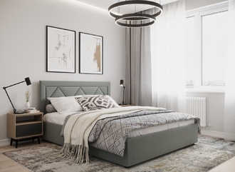 Фактура обивочного материала подбирается дизайнерами с учетом технологических и стилевых особенностей кровати.