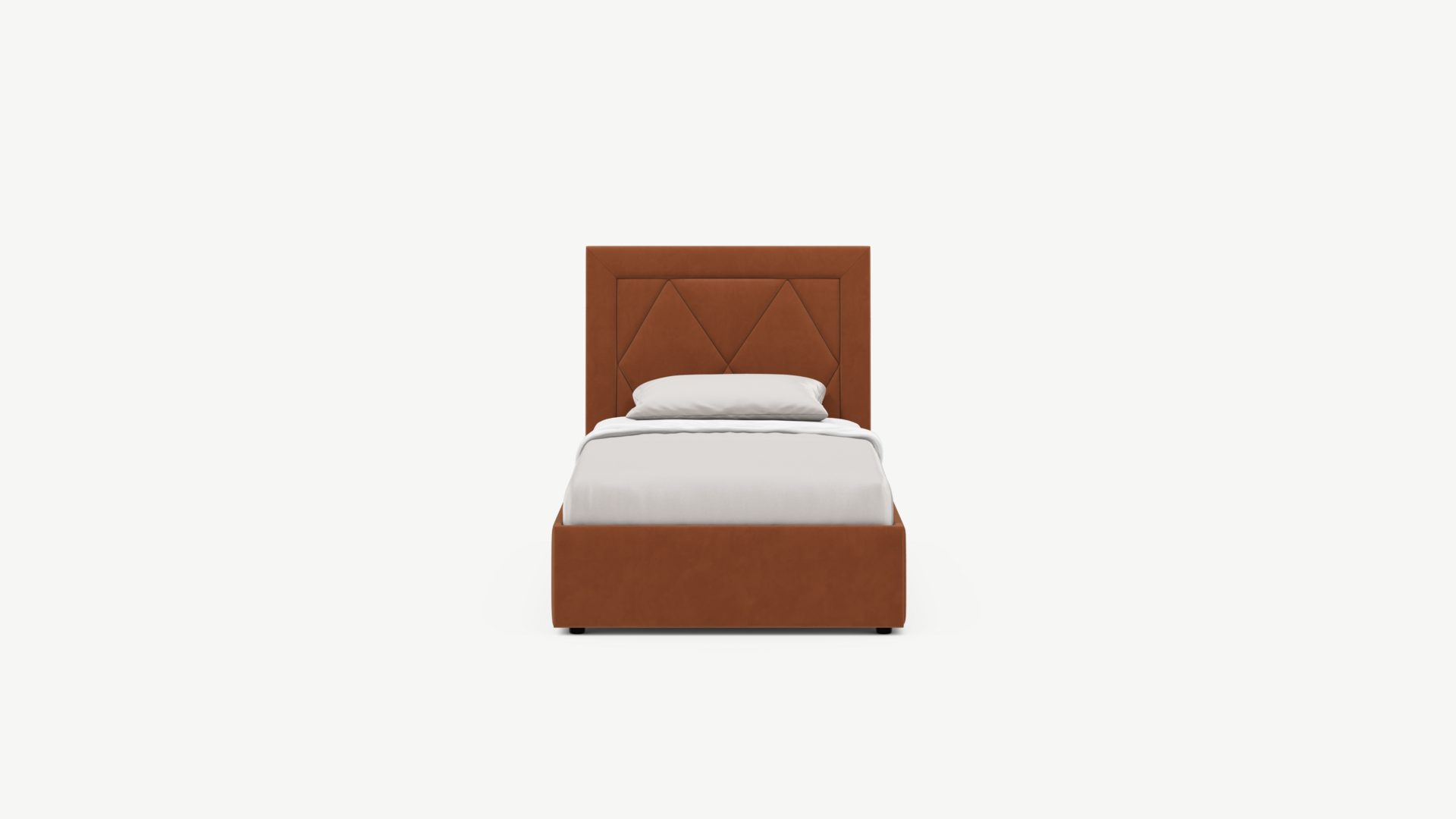 Фактура обивочного материала подбирается дизайнерами с учетом технологических и стилевых особенностей кровати.