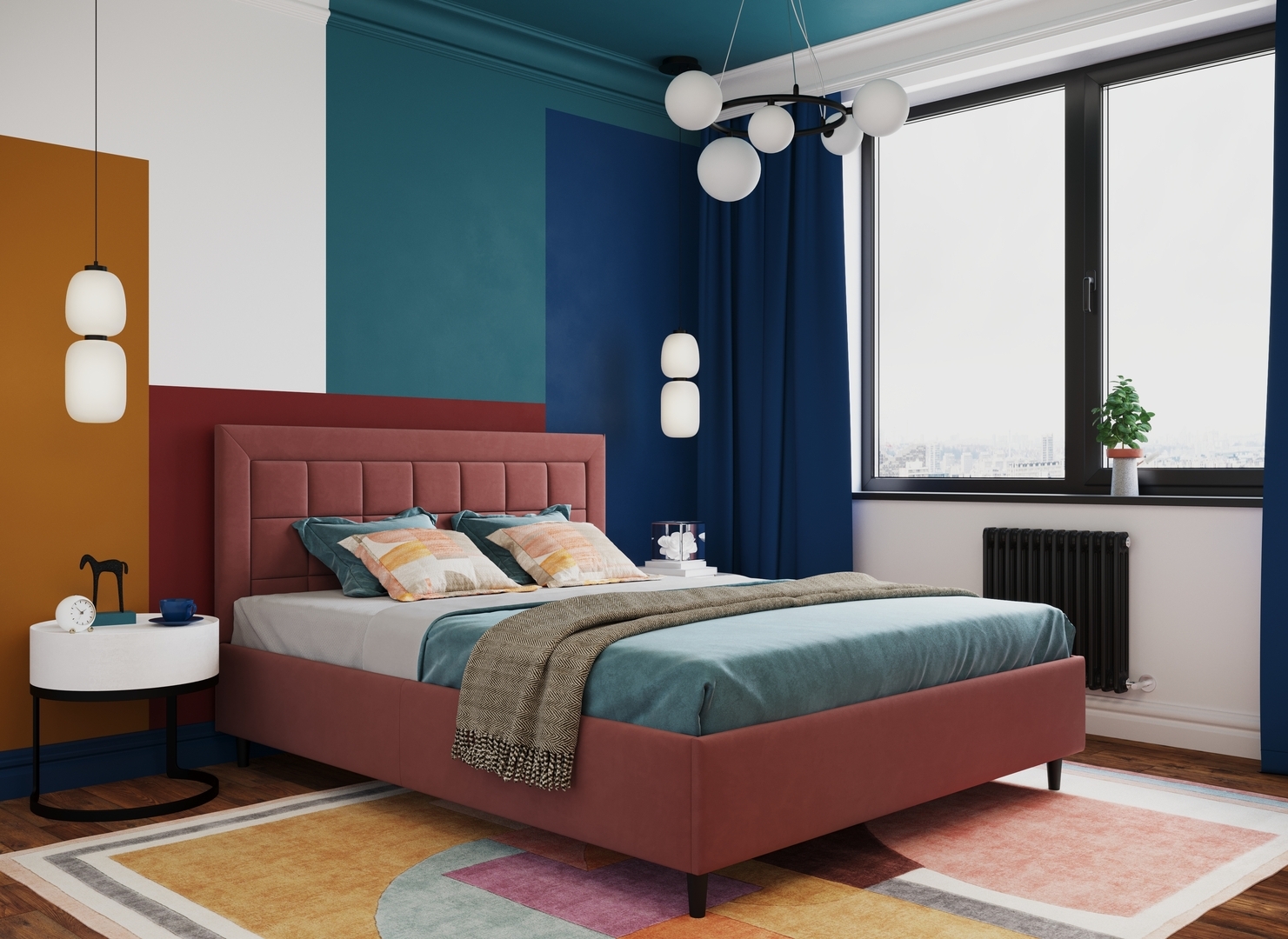 Создать гармоничный интерьер и завершить образ спальни помогут дополнительные аксессуары, например: тумбы, банкетки, подушки.