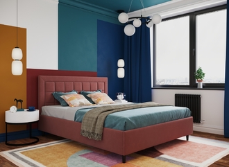 Стежка помещена в центр изголовья и обрамлена, словно картина. Объемные царги завершают цельную фигуру кровати и становятся гармоничным дополнением ее образа.
