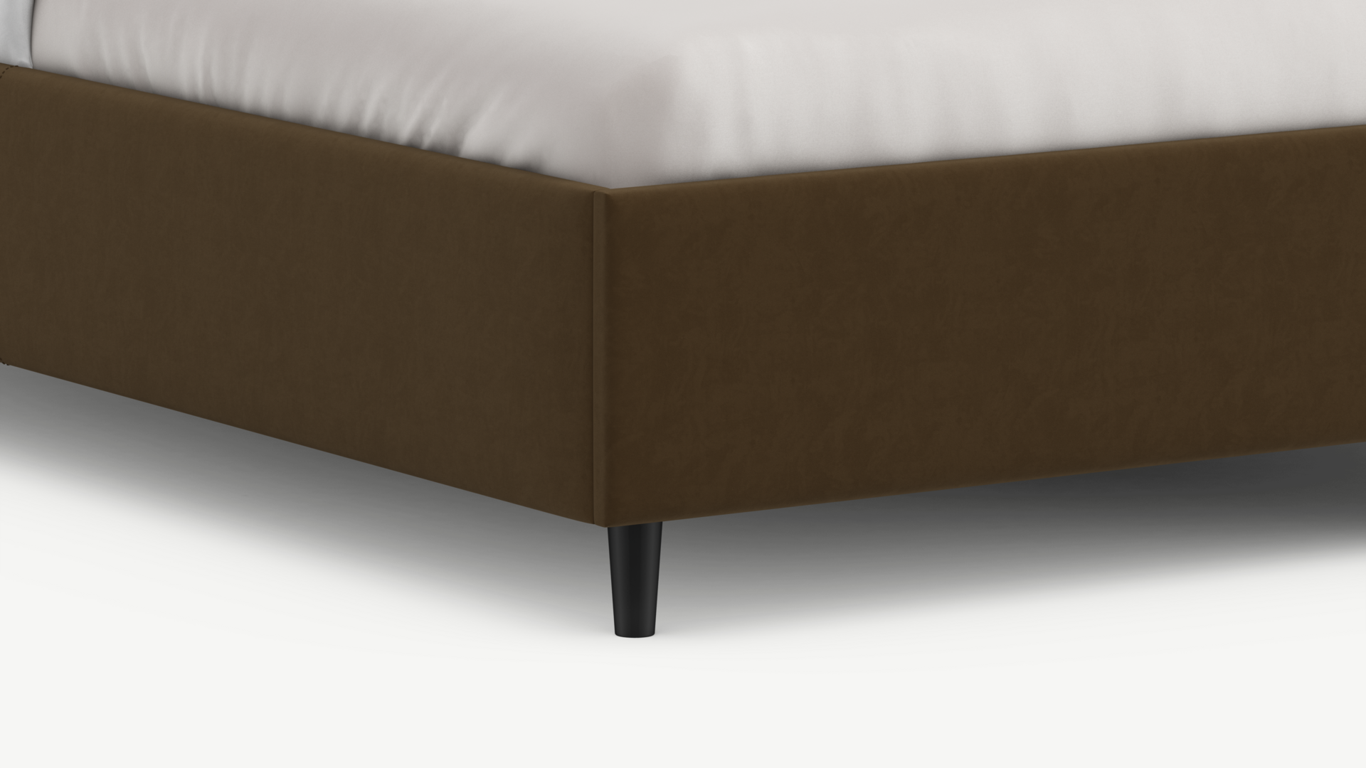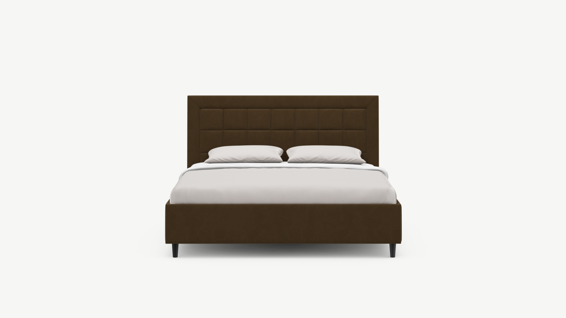 Стежка помещена в центр изголовья и обрамлена, словно картина. Объемные царги завершают цельную фигуру кровати и становятся гармоничным дополнением ее образа.