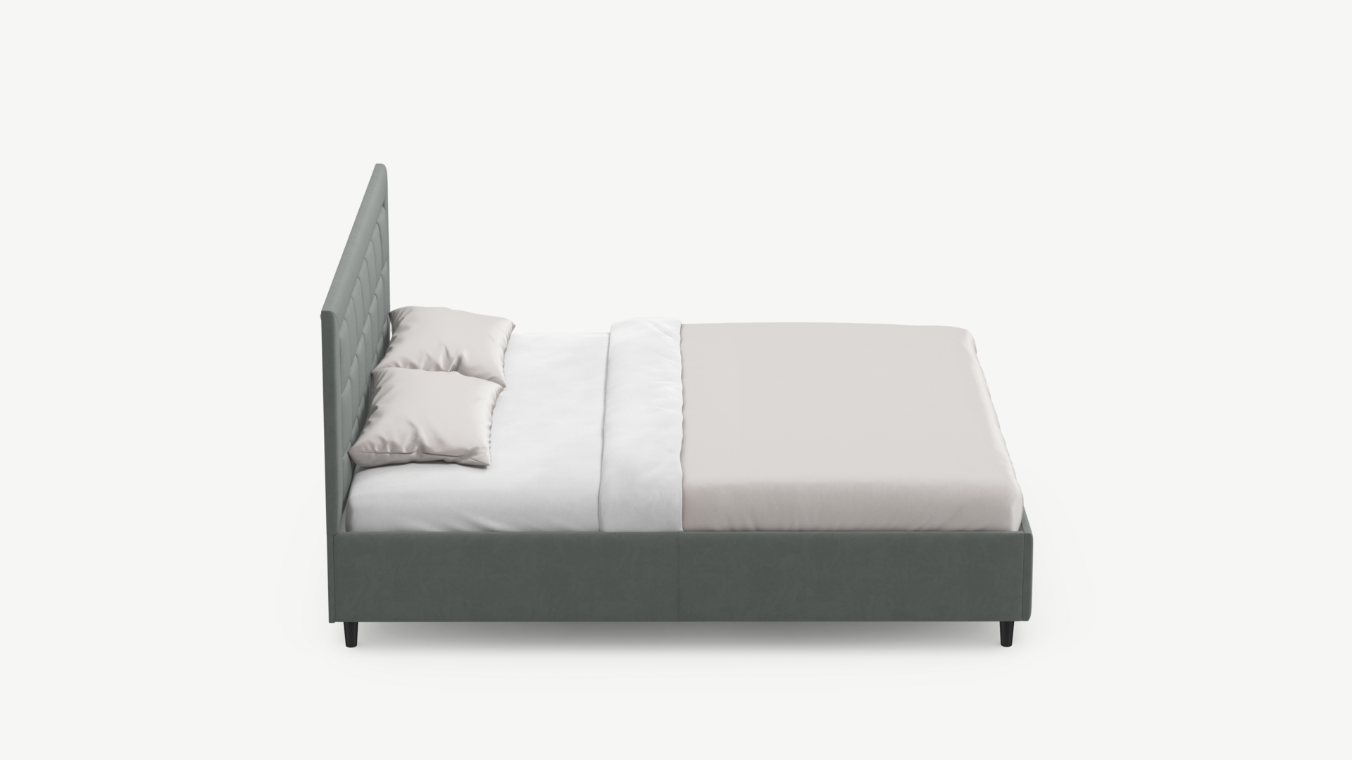 Стежка помещена в центр изголовья и обрамлена, словно картина. Объемные царги завершают цельную фигуру кровати и становятся гармоничным дополнением ее образа.