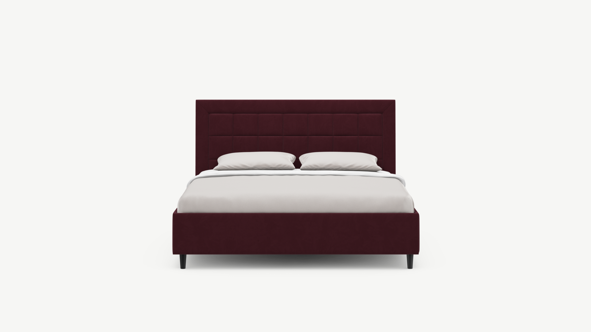 Стежка помещена в центр изголовья и обрамлена, словно картина. Объемные царги завершают цельную фигуру кровати и становятся гармоничным дополнением ее образа.