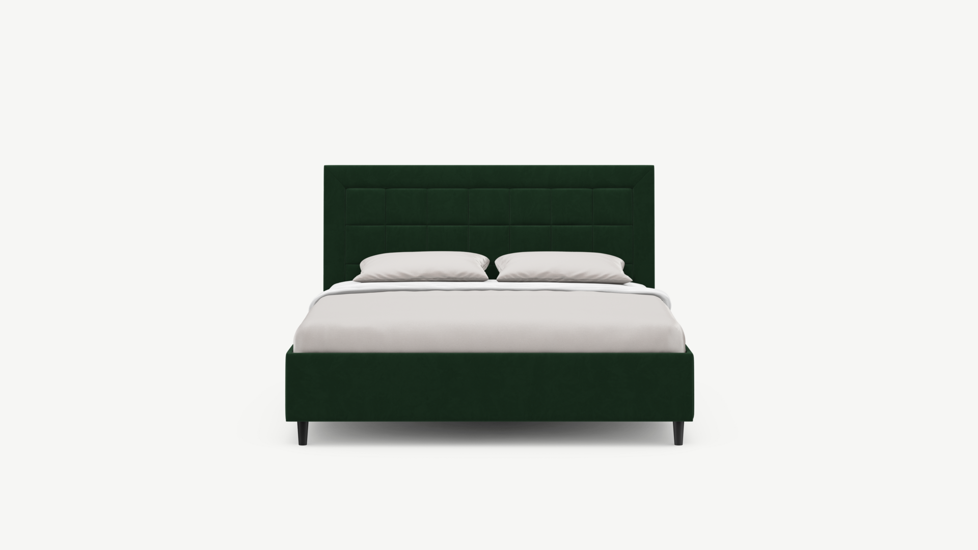 Стежка помещена в центр изголовья и обрамлена, словно картина. Объемные царги завершают цельную фигуру кровати и становятся гармоничным дополнением ее образа.