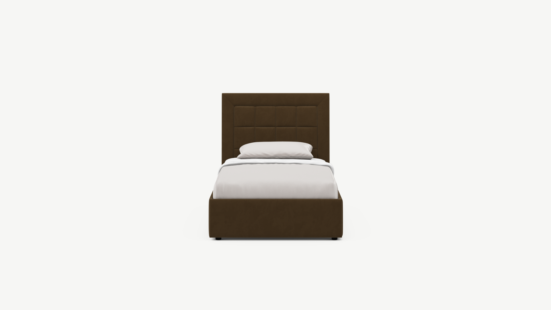 Кровать MOON FAMILY 1251 украшена объемной стежкой-рисунком. Особую выразительность стежка в крупный квадрат получает за счет глубины шва и фактурности проступающего рисунка. Помещенная в центр изголовья, стежка обрамлена тканью, словно картина – рамой. Формы MOON FAMILY 1251 оставлены максимально простыми. Едва заметные вертикальные шовчики на боковых царгах кровати добавляют образу шарма, удачно оттеняя уверенное звучание прямых и искусный декор изголовья.