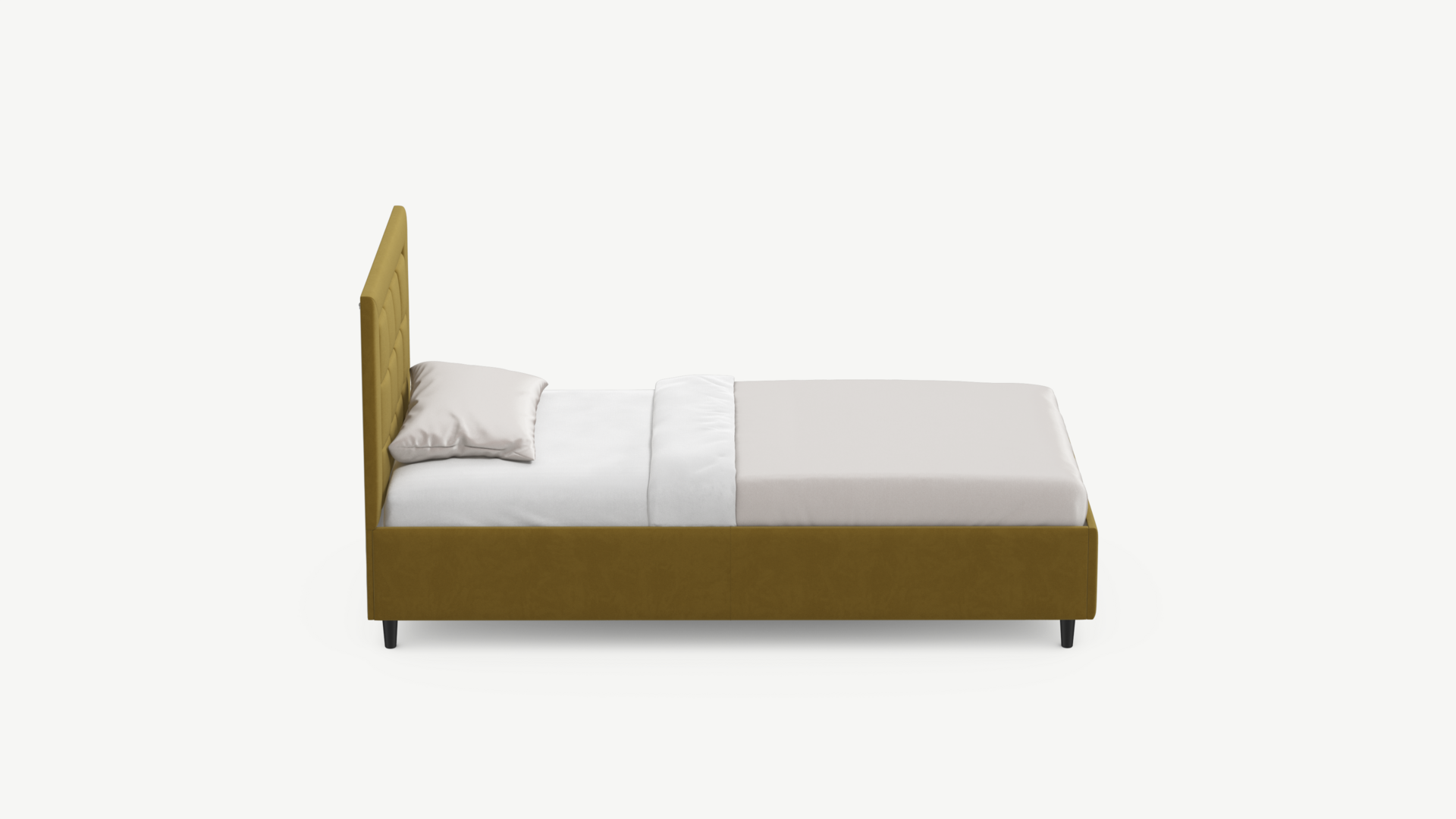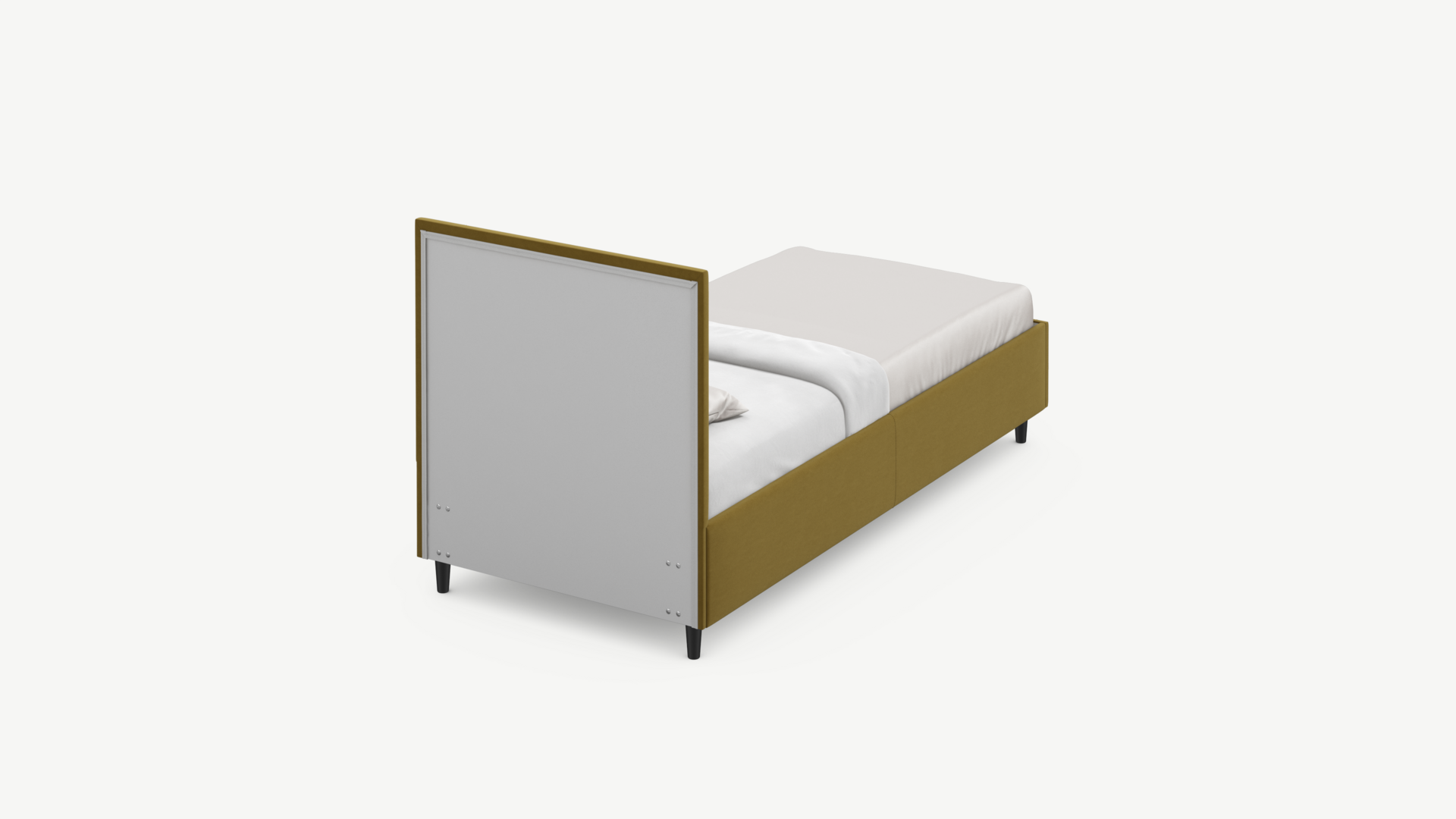 Стежка помещена в центр изголовья и обрамлена, словно картина. Объемные царги становятся гармоничным дополнением образа и завершают цельную фигуру кровати.