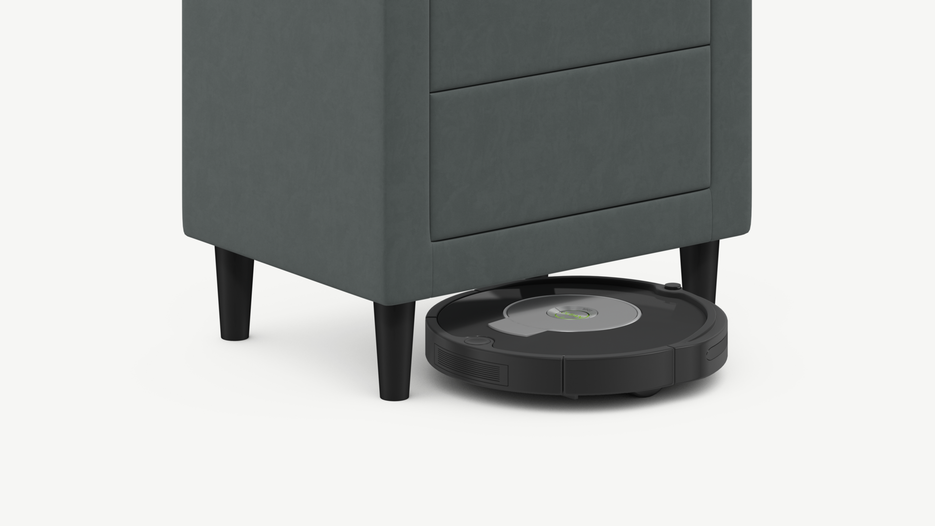 Под тумбой с высокими опорами проходит робот-пылесос и легко проводится влажная уборка, что обеспечивает чистоту и порядок в доме.