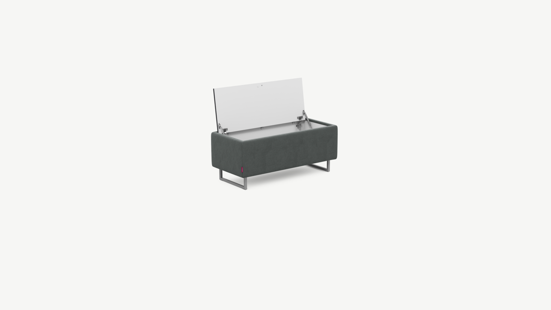 MOON 117 снабжена встроенной столешницей, а также вместительной емкостью для хранения. Легкий доступ к внутренней части банкетки обеспечивает скрытая в столешнице ультратонкая ручка. Оснащенная газовыми амортизаторами, крышка-столешница функционирует плавно и бесшумно. Надежно фиксируясь в открытом положении, она обеспечивает комфортный доступ к содержимому.