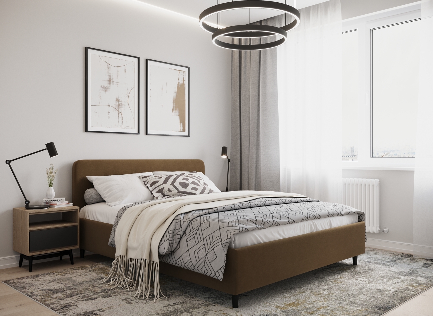 Создать гармоничный интерьер и завершить образ спальни помогут дополнительные аксессуары, например: тумбы, банкетки, подушки.