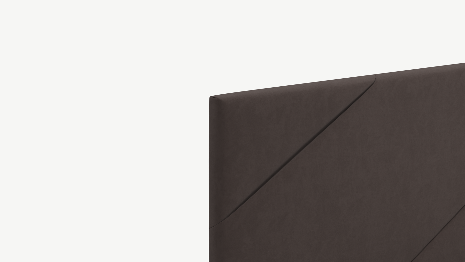 MOON FAMILY 1257 привлекает внимание оригинальным исполнением: широкие полосы ткани эффектно пересекают периметр изголовья, создавая на нем графический орнамент. Лаконичные формы объемных царг создают единый гармоничный образ и фокусируют внимание на центральном текстурном элементе кровати.