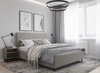 Фактура обивочного материала подбирается дизайнерами с учетом технологических и стилевых особенностей кровати.