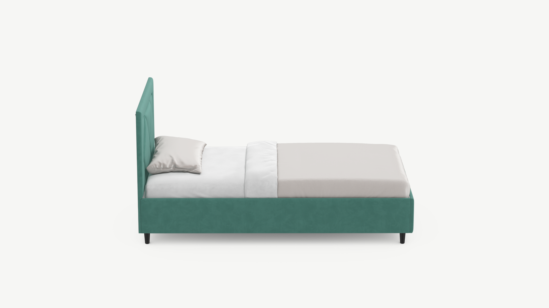 Фактура обивочного материала подбирается дизайнерами с учетом технологических и стилевых особенностей кровати.