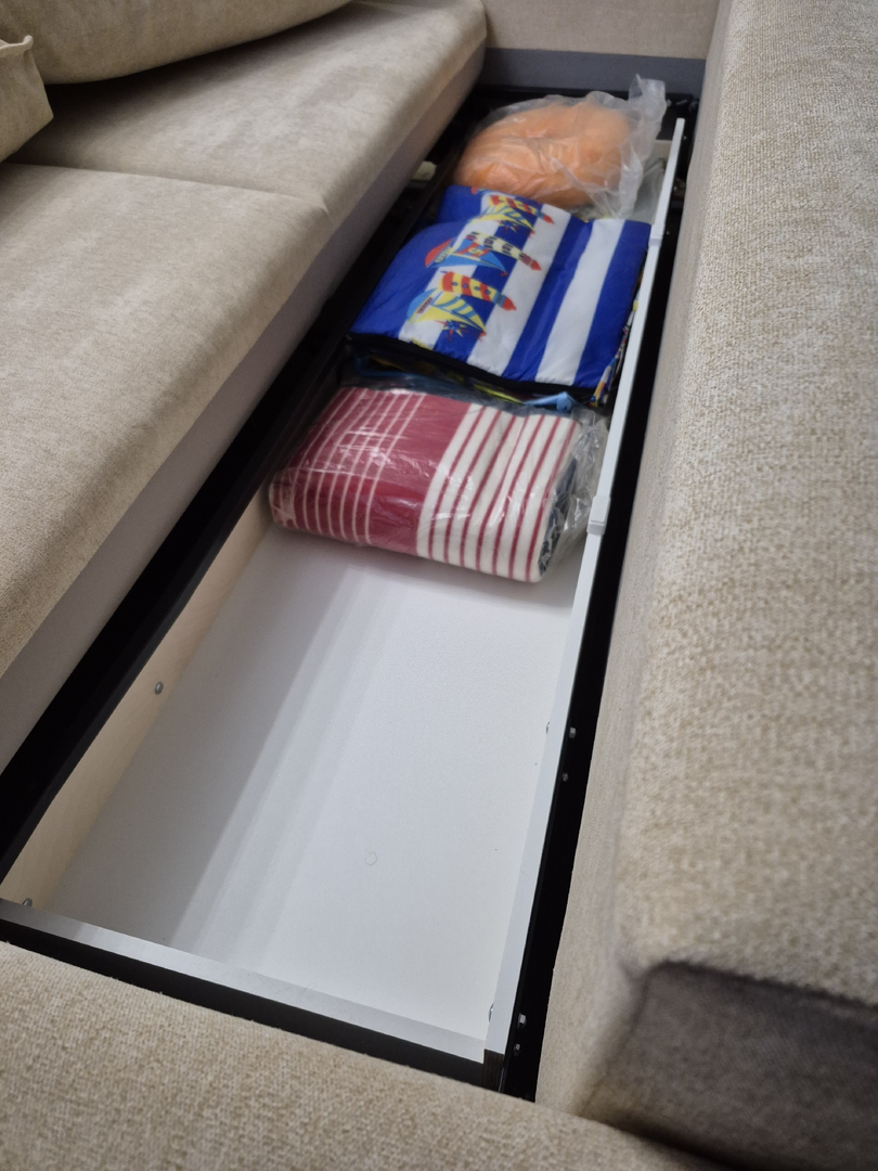 Большой удобный диван, несмотря на свои габариты, он легкий, легко двигать, не царапает пол - на ножках стоят защитные накладки. Посадка для высоких людей отличная.