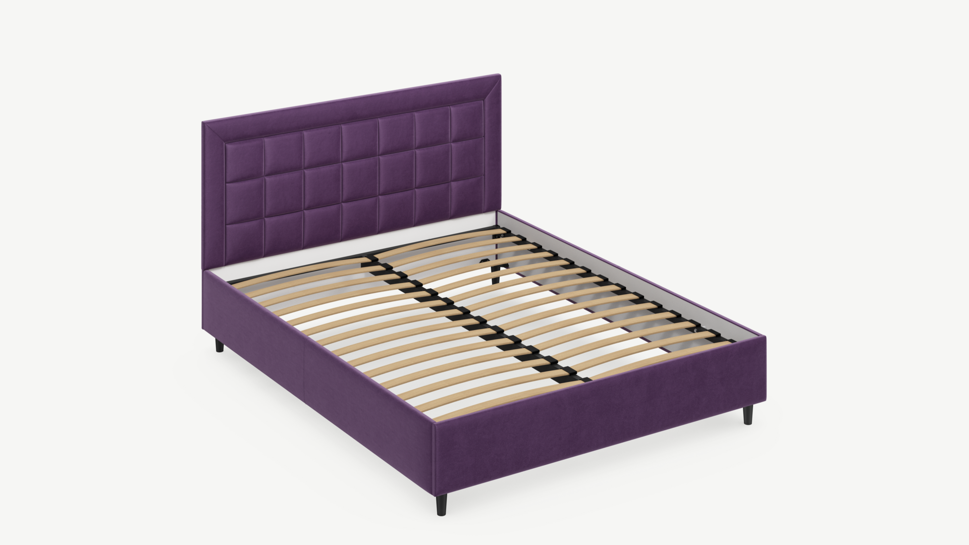 Рама, изголовье и царги надежно крепятся между собой, обеспечивая прочность и устойчивость кровати.