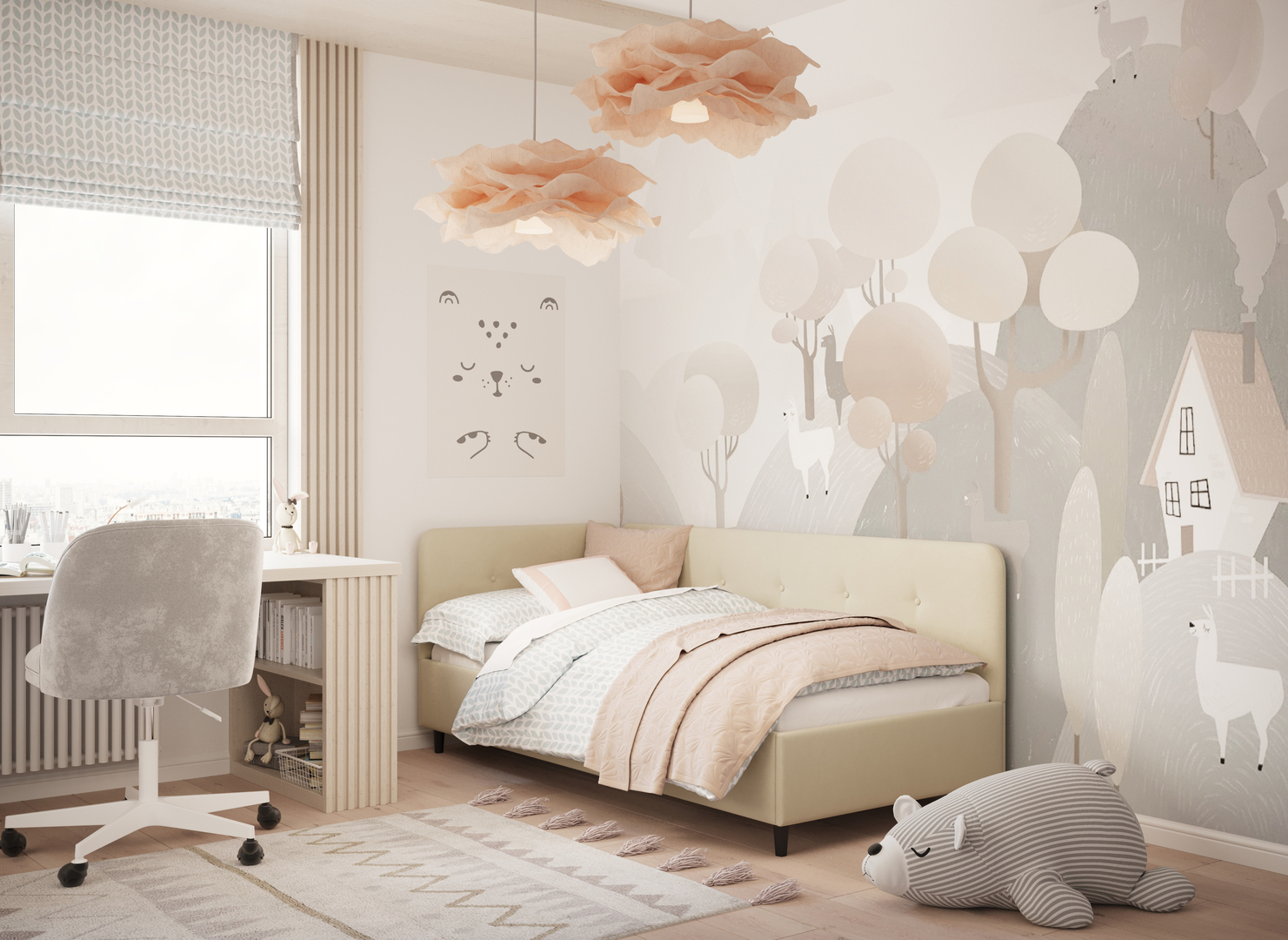 В подростковой комнате эта кровать станет стильным акцентом окружающего интерьера и возьмет на себя роль удобной кушетки для друзей, зашедших в гости.