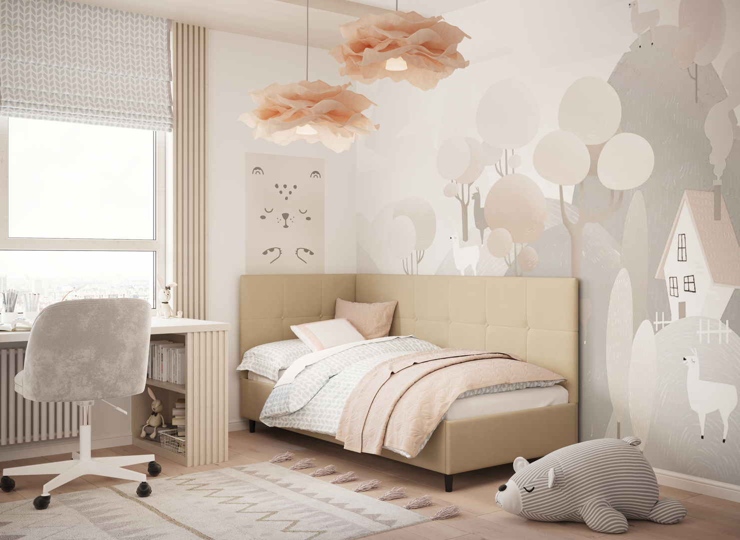 В подростковой комнате эта кровать станет стильным акцентом окружающего интерьера и возьмет на себя роль удобной кушетки для друзей, зашедших в гости.