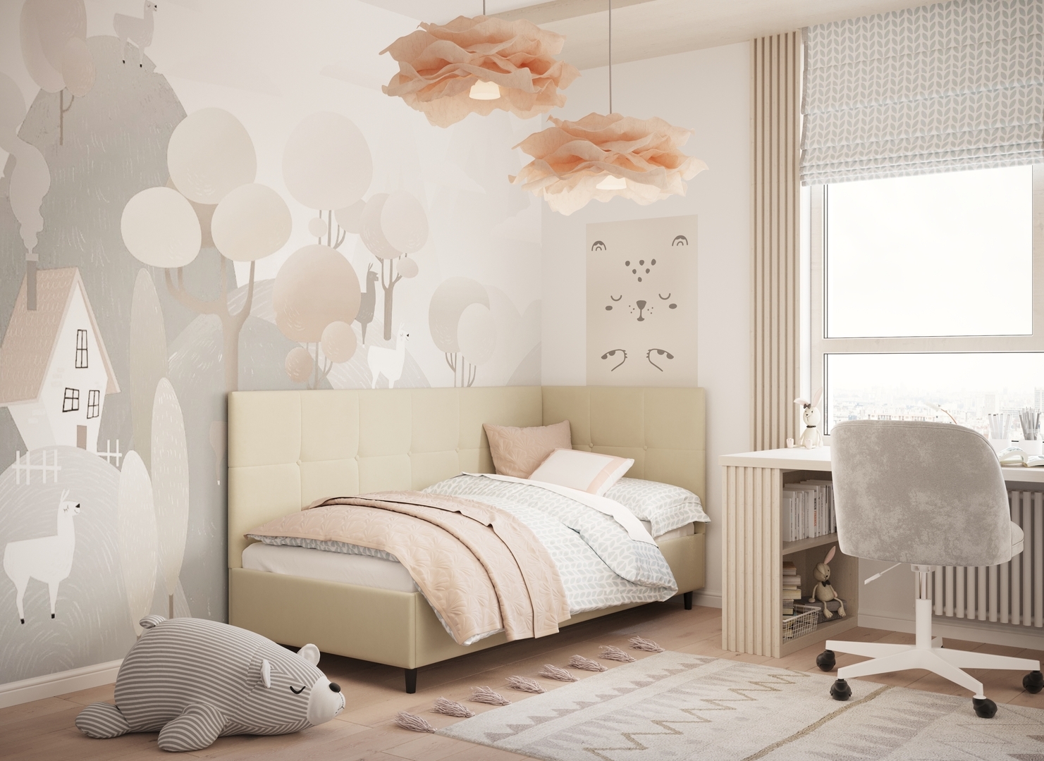 В подростковой комнате эта кровать станет стильным акцентом окружающего интерьера и возьмет на себя роль удобной кушетки для друзей, зашедших в гости.