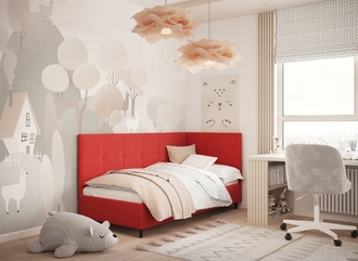 Угловая односпальная кровать MOON FAMILY 1261 с мягкой спинкой и изголовьем создаст в Вашей спальне ощущение уюта. Крупная квадратная стежка привносит в интерьер графических акцентов, а вставка из пуговиц наполняет пространство ощущением домашнего тепла.