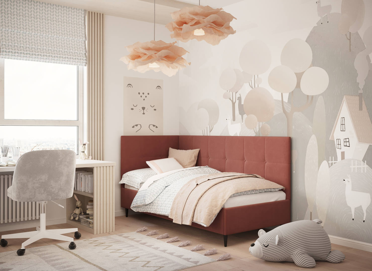 В подростковой комнате эта кровать станет стильным акцентом окружающего интерьера и возьмет на себя роль удобной кушетки для друзей, зашедших в гости.