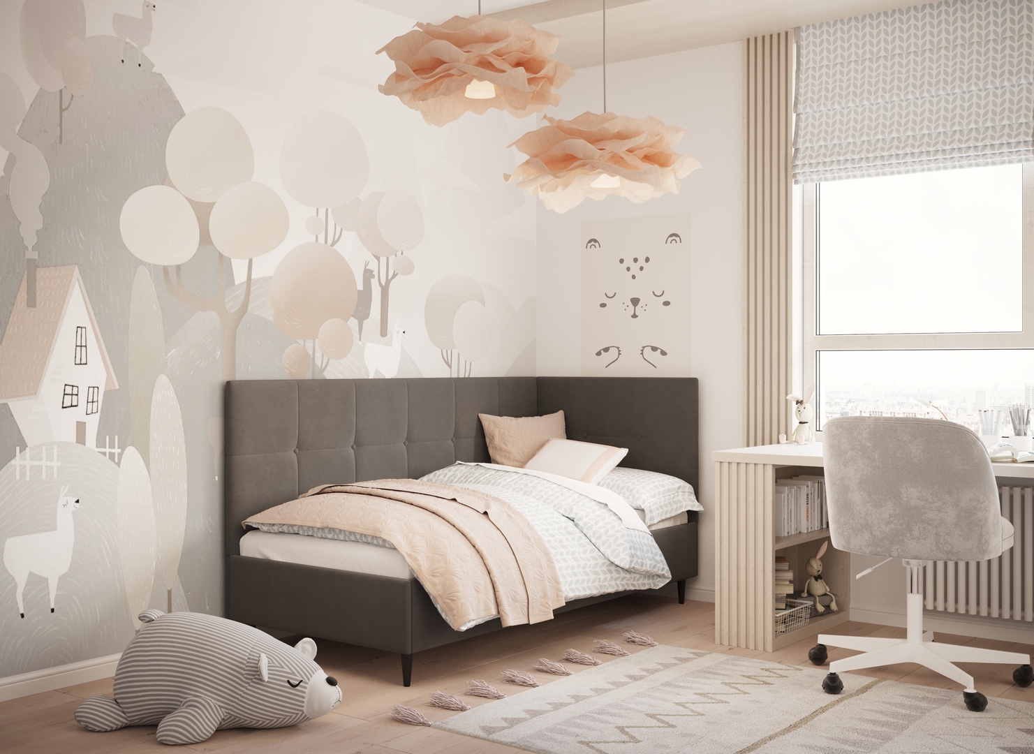 В подростковой комнате эта кровать станет стильным акцентом окружающего интерьера и возьмет на себя роль удобной кушетки для друзей, зашедших в гости.