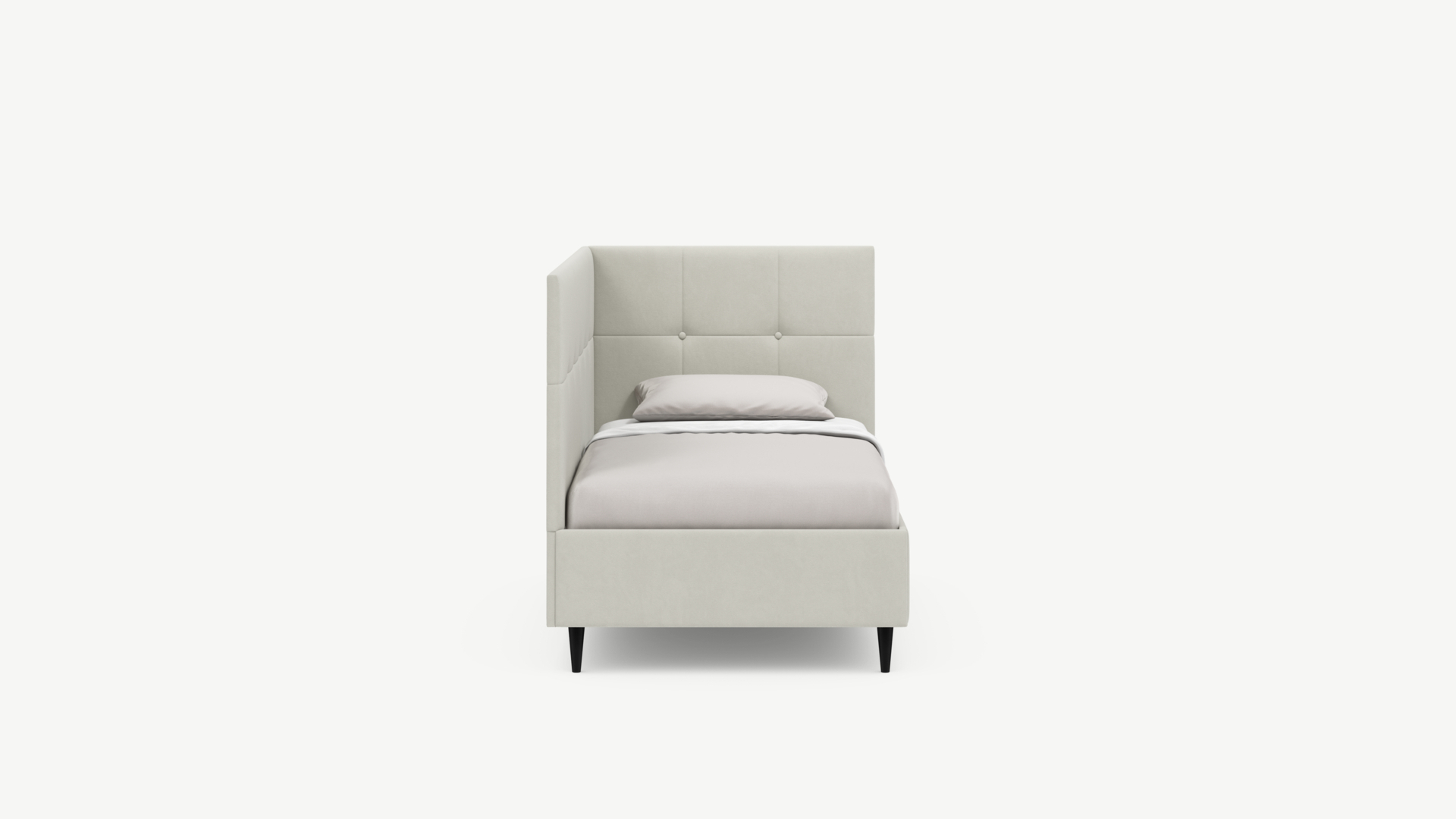 Угловая односпальная кровать MOON FAMILY 1261 с мягкой спинкой и изголовьем создаст в Вашей спальне ощущение уюта. Крупная квадратная стежка привносит в интерьер графических акцентов, а вставка из пуговиц наполняет пространство ощущением домашнего тепла.
