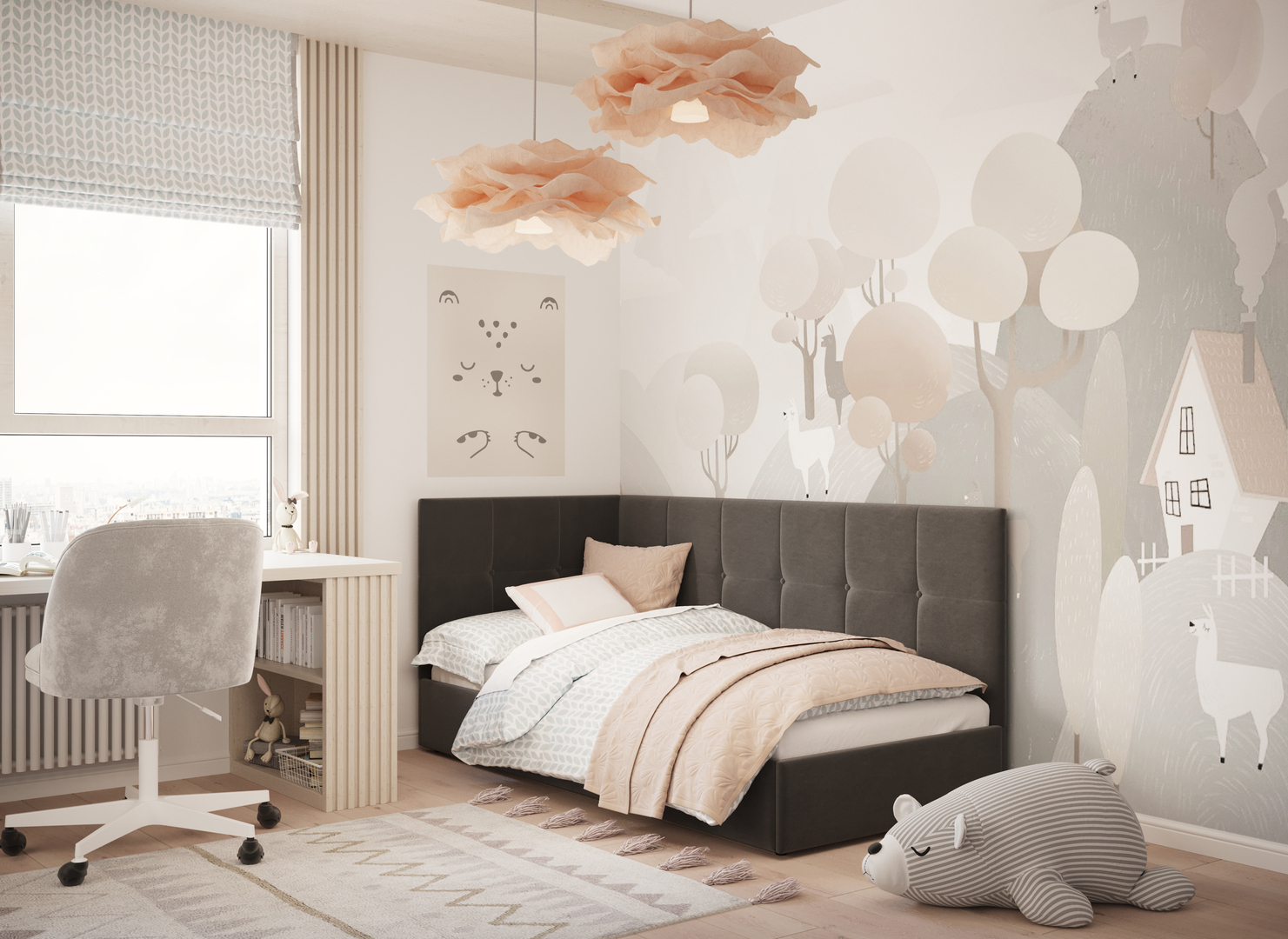 В подростковой комнате эта кровать станет стильным акцентом окружающего интерьера и возьмет на себя роль удобной кушетки для друзей, зашедших в гости.