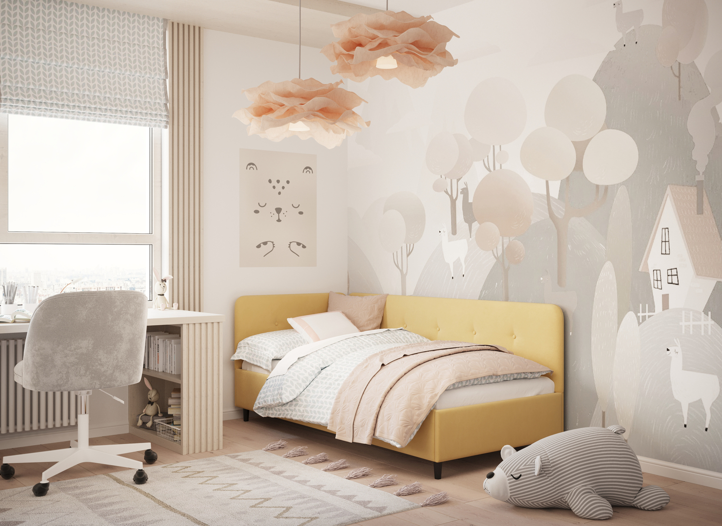 В подростковой комнате эта кровать станет стильным акцентом окружающего интерьера и возьмет на себя роль удобной кушетки для друзей, зашедших в гости.
