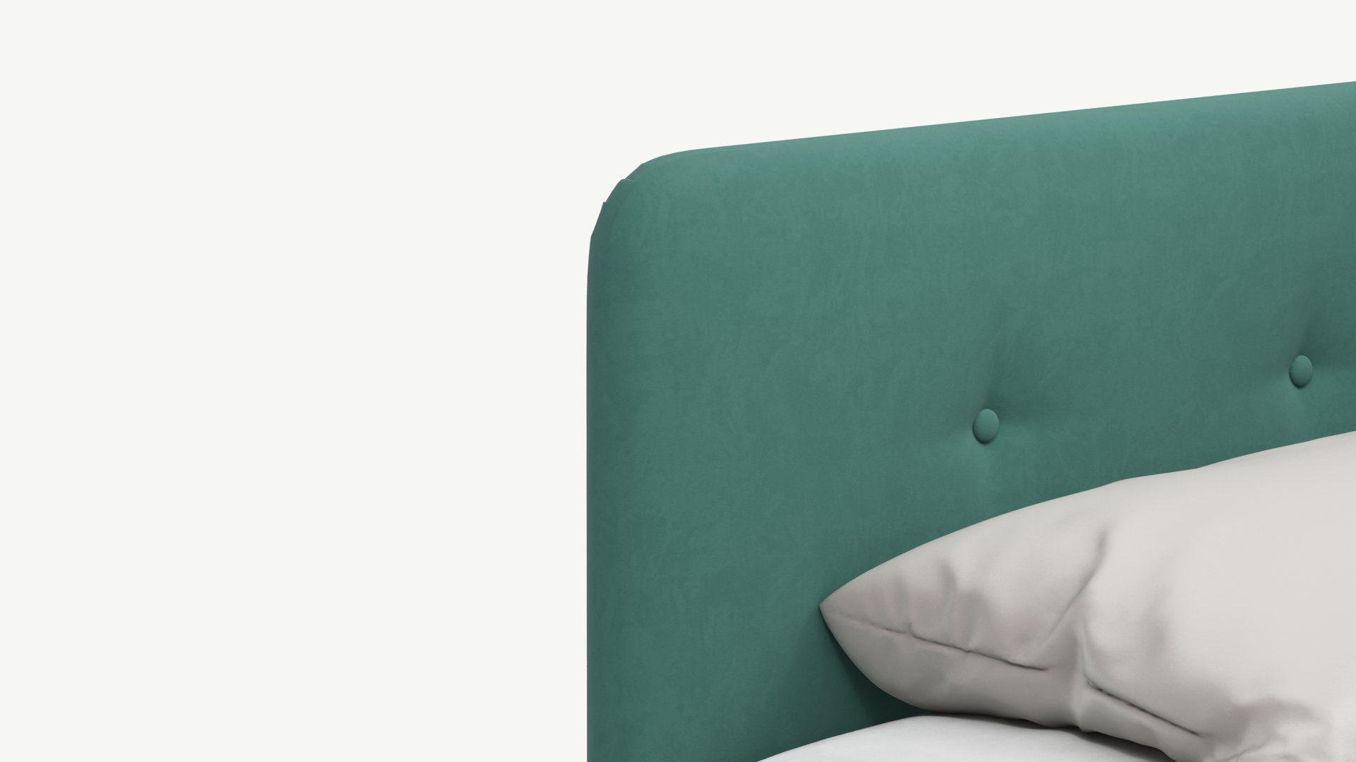 Угловая односпальная кровать MOON FAMILY 1253 с мягкой спинкой и изголовьем обладает округлыми формами, привносящими в интерьер нотки нежности. Изголовье, украшенное пуговицами, добавляет окружающему пространству шарм и уют. Высокие опоры придают кровати визуальной легкости, а также обеспечивают удобство во время уборки.