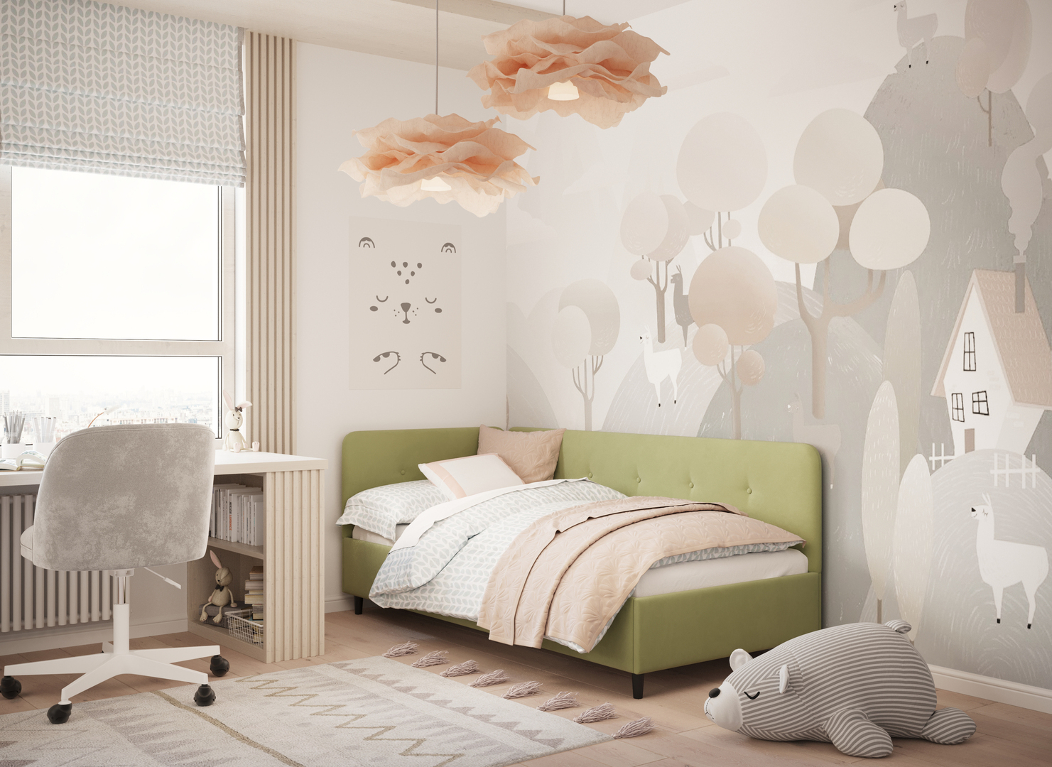 В подростковой комнате эта кровать станет стильным акцентом окружающего интерьера и возьмет на себя роль удобной кушетки для друзей, зашедших в гости.