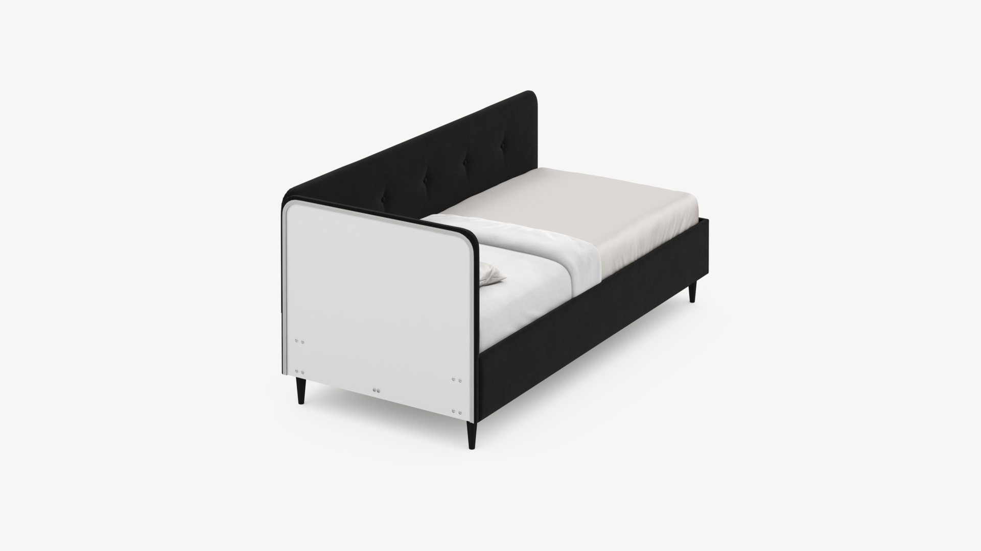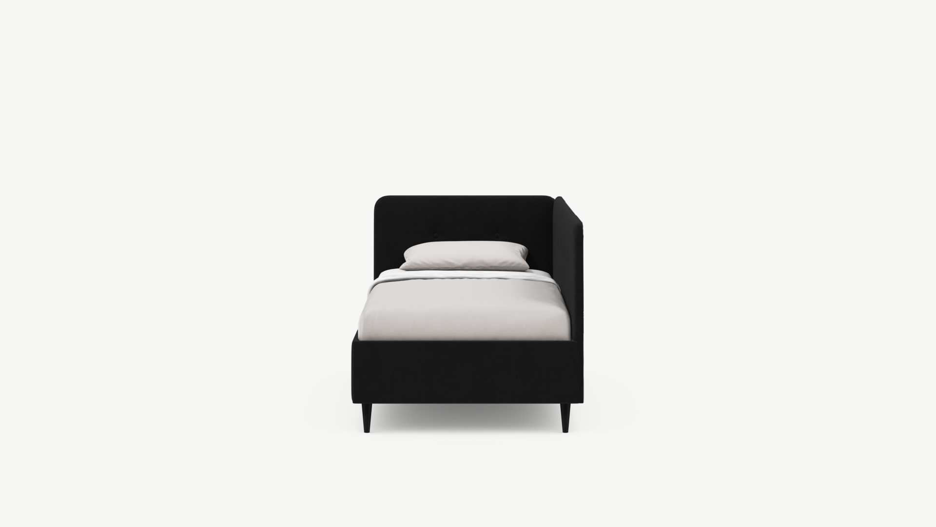 Кровать угловая с подъемным механизмомУгловая односпальная кровать MOON FAMILY 1253 с мягкой спинкой и изголовьем обладает округлыми формами, привносящими в интерьер нотки нежности. Изголовье, украшенное пуговицами, добавляет окружающему пространству шарм и уют. Высокие опоры придают кровати визуальной легкости, а также обеспечивают удобство во время уборки.