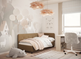 В подростковой комнате эта кровать станет стильным акцентом окружающего интерьера и возьмет на себя роль удобной кушетки для друзей, зашедших в гости.