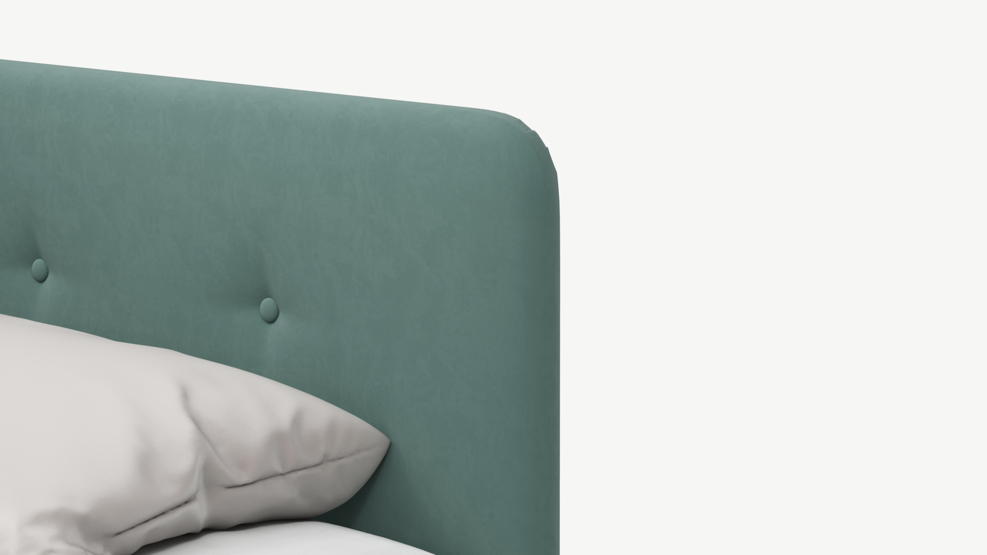 Угловая односпальная кровать MOON FAMILY 1253 с мягкой спинкой и изголовьем обладает округлыми формами, привносящими в интерьер нотки нежности. Изголовье, украшенное пуговицами, добавляет окружающему пространству шарм и уют. Высокие опоры придают кровати визуальной легкости, а также обеспечивают удобство во время уборки.