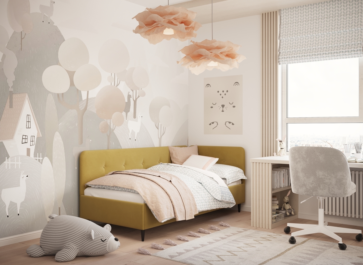 В подростковой комнате эта кровать станет стильным акцентом окружающего интерьера и возьмет на себя роль удобной кушетки для друзей, зашедших в гости.