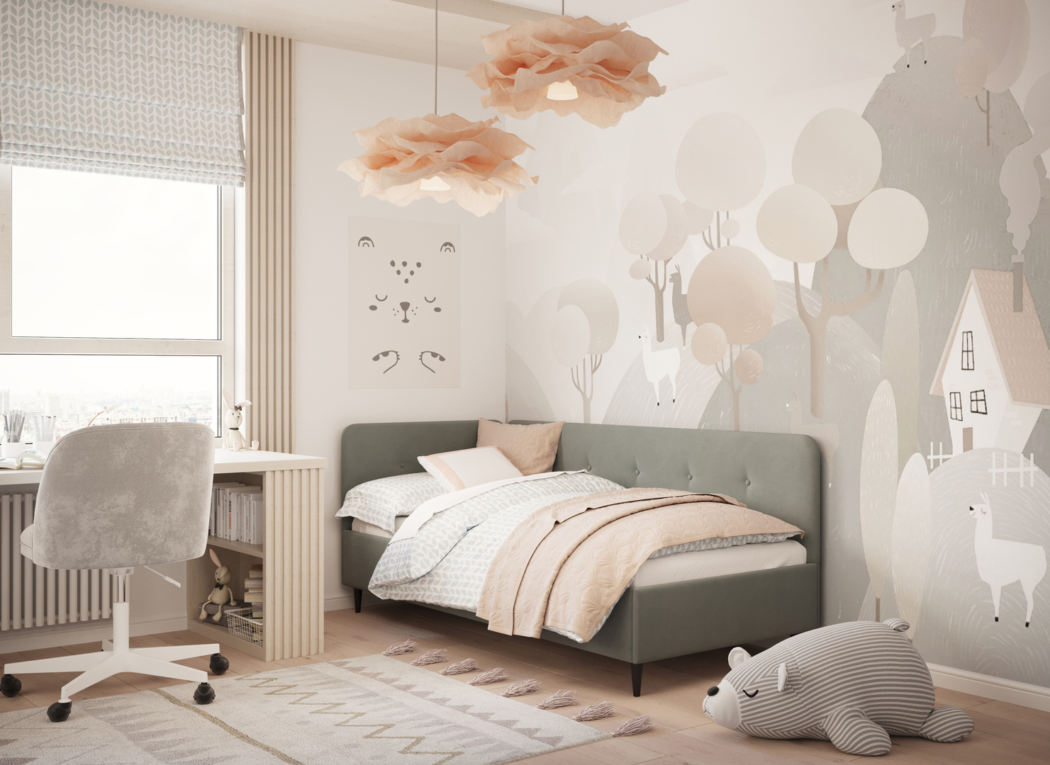 В подростковой комнате эта кровать станет стильным акцентом окружающего интерьера и возьмет на себя роль удобной кушетки для друзей, зашедших в гости.