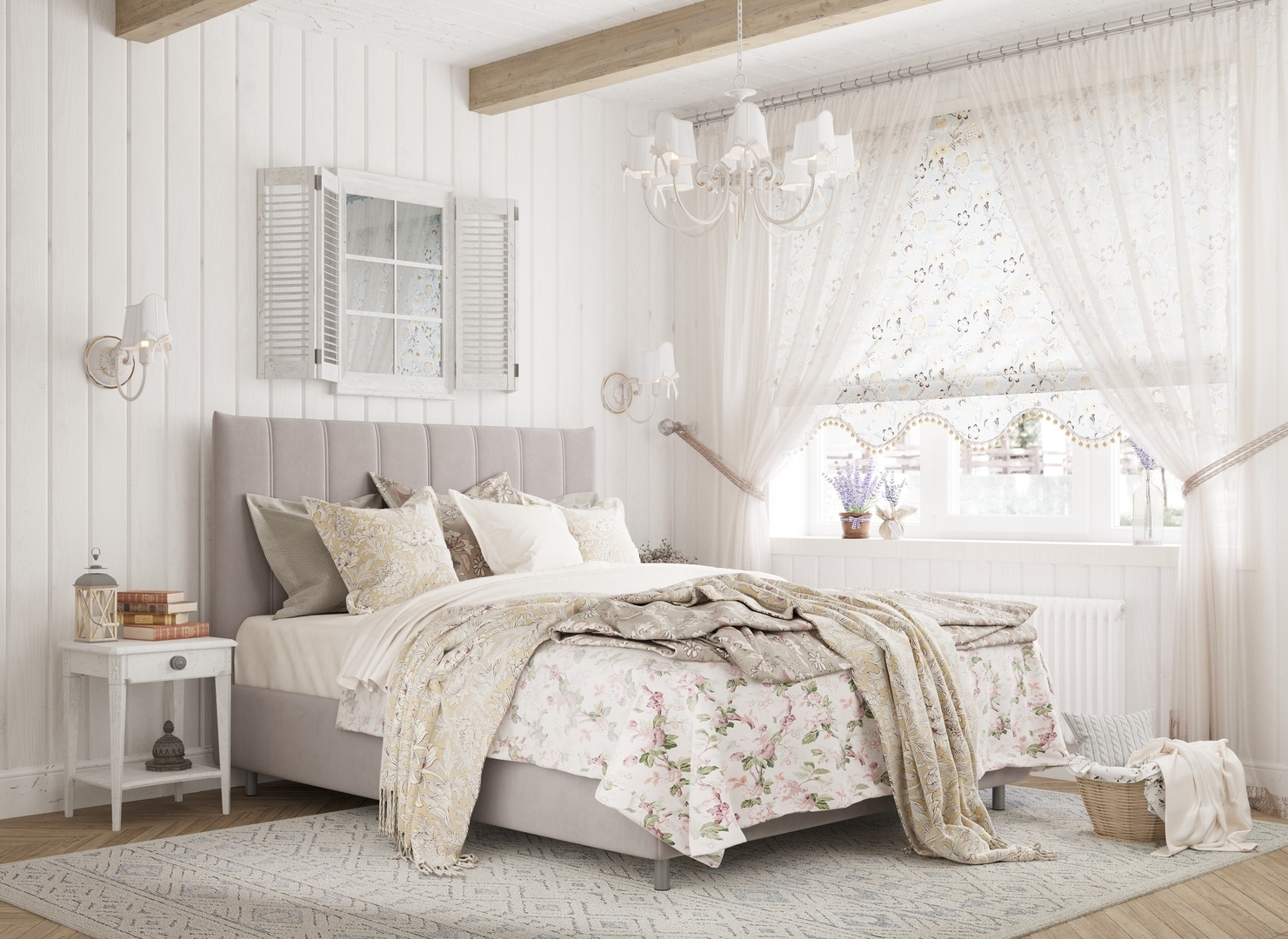 Матрас, декоративные подушки и саше