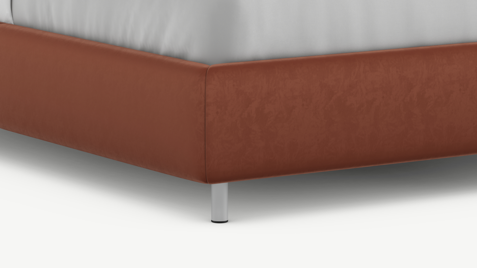 К кровати предлагается два варианта металлических опор на выбор — цилиндрической или фигурной формы. Фигурные опоры представлены с одним вариантом высоты 9 см, а цилиндрические опоры в двух вариантах — 9 см или 12 см на выбор.