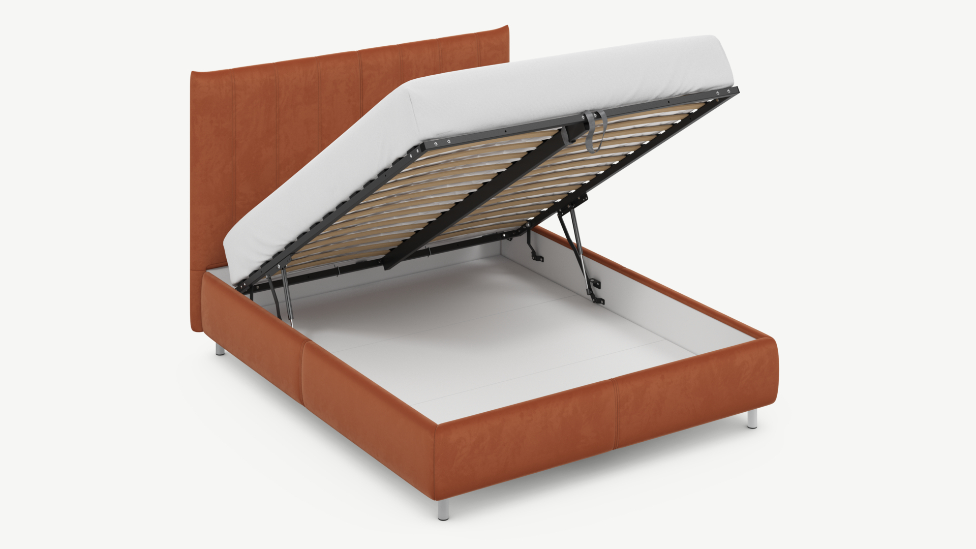 • Скрытая под основанием вместительная емкость без внутренних перегородок позволяет использовать всю площадь подкроватного пространства для хранения вещей.