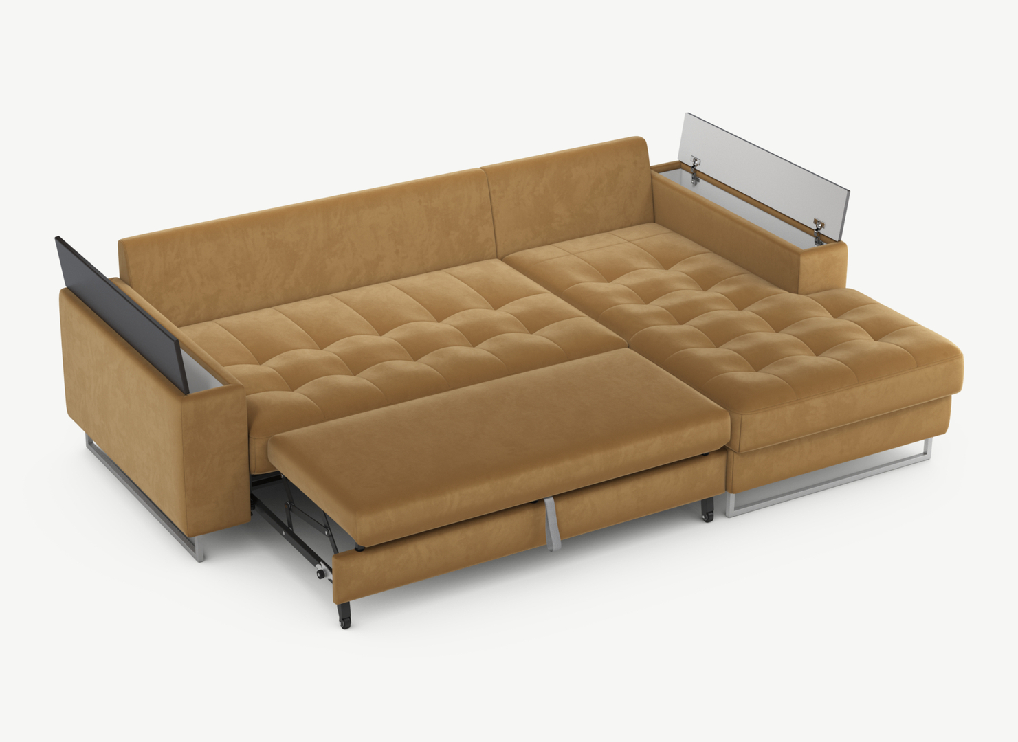 Секция «канапе» обеспечивает дополнительное пространство для отдыха, благодаря которому Вы можете располагаться с максимальным комфортом, удобно вытянув ноги. Под данной секцией расположен вместительный бельевой короб.